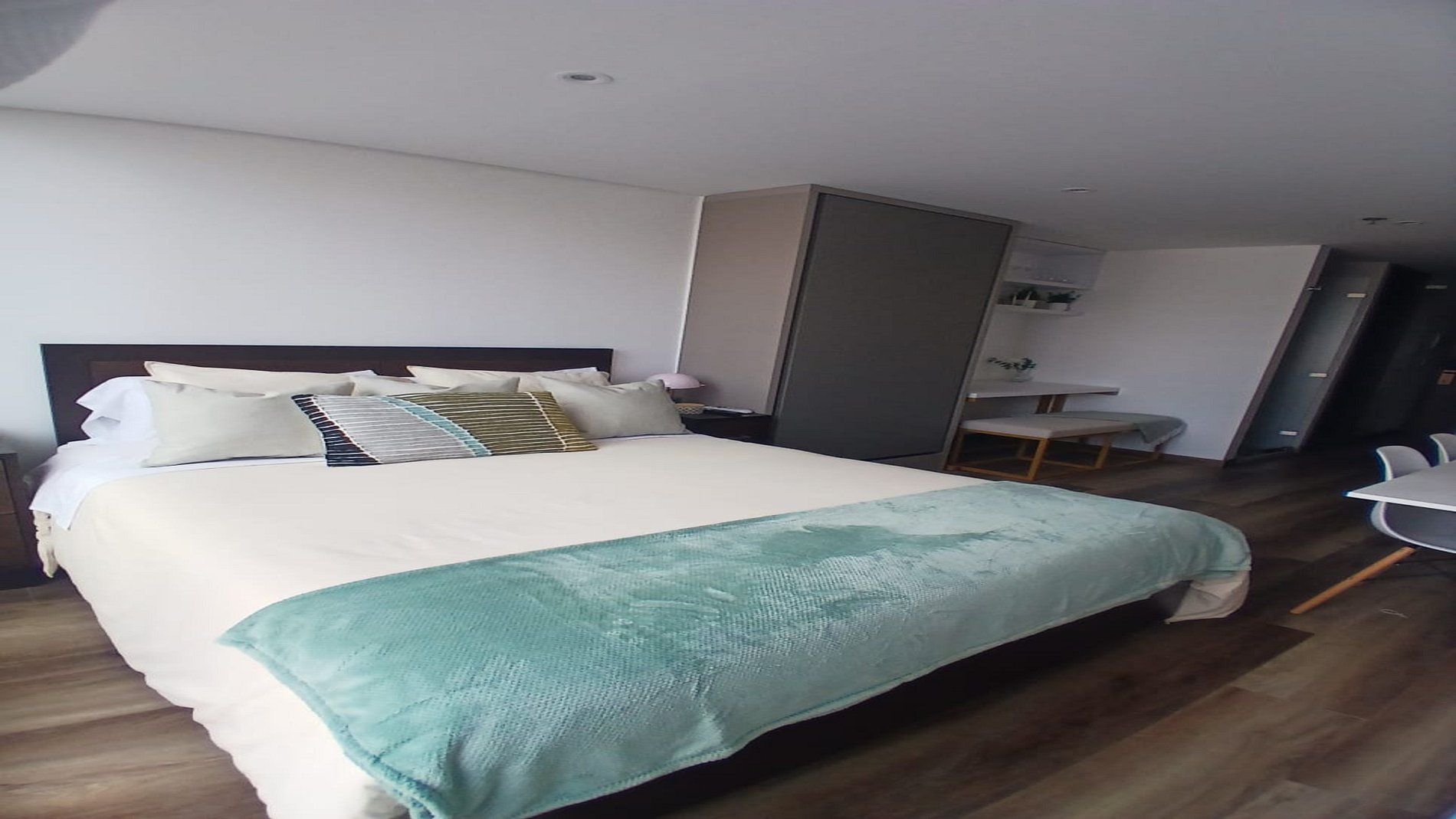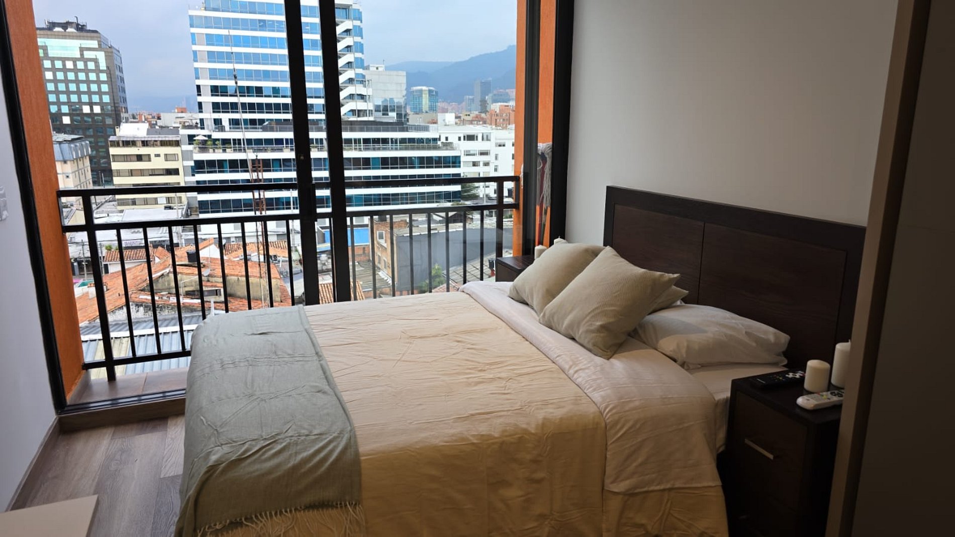 Este hermoso alojamiento ubicado en Bogotá en una de las mejores zonas de la ciudad, te ofrece comodidad y tranquilidad para pasar las mejores noches en tu visita a Bogotá. Aquí encontraras lujo, exclusividad, comodidad y ubicación estratégica, este apartamento, sofá cama abatible, comedor, baño y ducha con agua caliente, puerta con cerradura digital, lavadora secadora, closet, cocina (nevera tipo bar, estufa de 4 puestos), escritorio abatible, ideal para trabajar con comodidad y tranquilidad, balcón, televisor de 40" con sistema inteligente. Nuestro edificio cuenta con Spa de masajes, zonas húmedas, Gimnasio de TAJ Fitness y SPA, el Club TAJ con zona de relax y de trabajo, Zona de Yoga, Zona de teppanyaki, área de BBQ, terraza con pista de trote, golfito, crossfit y salón de juegos. Disfruta de un lobby tipo hotel, con un Sport Bar 24 horas accede a nuestro alojamiento mediante un espectacular ascensor panorámico y disfruta de los mejores restaurantes en la única alameda peatonal y comercial.