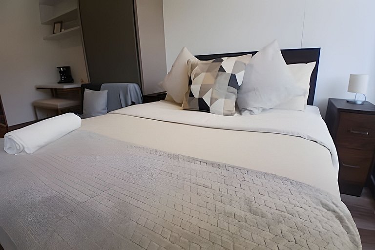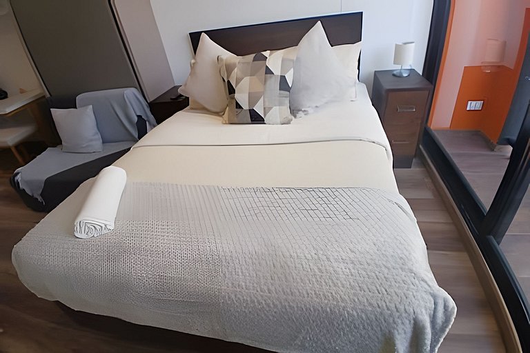 Este hermoso alojamiento ubicado en Bogotá en una de las mejores zonas de la ciudad, te ofrece comodidad y tranquilidad para pasar las mejores noches en tu visita a Bogotá. Aquí encontraras lujo, exclusividad, comodidad y ubicación estratégica, este apartamento, sofá cama abatible, comedor, baño y ducha con agua caliente, puerta con cerradura digital, lavadora secadora, closet, cocina (nevera tipo bar, estufa de 4 puestos), escritorio abatible, ideal para trabajar con comodidad y tranquilidad, balcón, televisor de 40" con sistema inteligente. Nuestro edificio cuenta con Spa de masajes, zonas húmedas, Gimnasio de TAJ Fitness y SPA, el Club TAJ con zona de relax y de trabajo, Zona de Yoga, Zona de teppanyaki, área de BBQ, terraza con pista de trote, golfito, crossfit y salón de juegos. Disfruta de un lobby tipo hotel, con un Sport Bar 24 horas accede a nuestro alojamiento mediante un espectacular ascensor panorámico y disfruta de los mejores restaurantes en la única alameda peatonal y comercial.