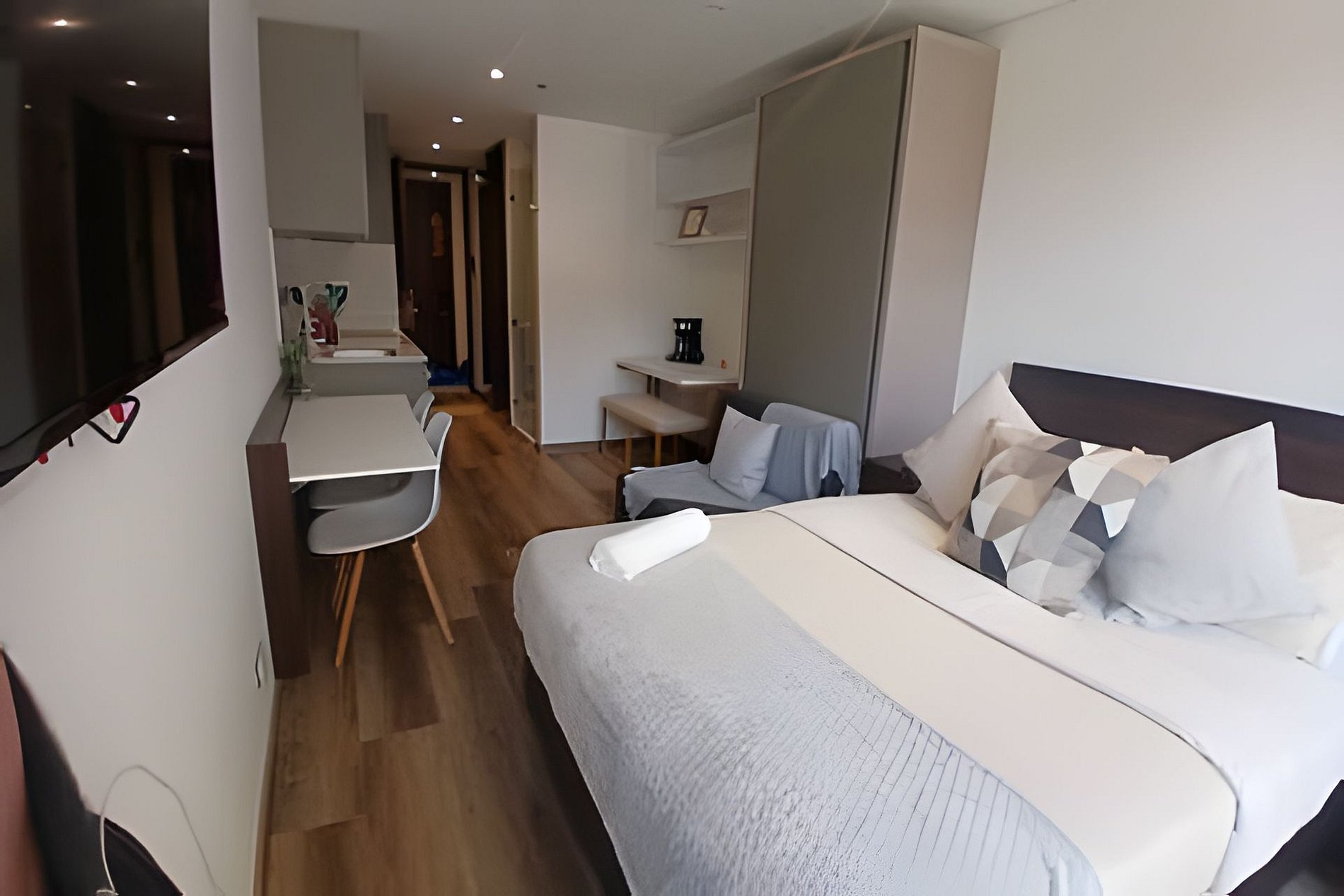 Este hermoso alojamiento ubicado en Bogotá en una de las mejores zonas de la ciudad, te ofrece comodidad y tranquilidad para pasar las mejores noches en tu visita a Bogotá. Aquí encontraras lujo, exclusividad, comodidad y ubicación estratégica, este apartamento, sofá cama abatible, comedor, baño y ducha con agua caliente, puerta con cerradura digital, lavadora secadora, closet, cocina (nevera tipo bar, estufa de 4 puestos), escritorio abatible, ideal para trabajar con comodidad y tranquilidad, balcón, televisor de 40" con sistema inteligente. Nuestro edificio cuenta con Spa de masajes, zonas húmedas, Gimnasio de TAJ Fitness y SPA, el Club TAJ con zona de relax y de trabajo, Zona de Yoga, Zona de teppanyaki, área de BBQ, terraza con pista de trote, golfito, crossfit y salón de juegos. Disfruta de un lobby tipo hotel, con un Sport Bar 24 horas accede a nuestro alojamiento mediante un espectacular ascensor panorámico y disfruta de los mejores restaurantes en la única alameda peatonal y comercial.
