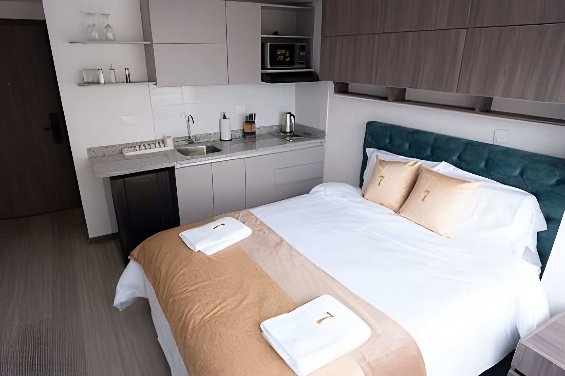 Ubicado en el vibrante barrio Galerías -Teusaquillo, carca al campin y al Movistar Arena Malú 777 combina diseño contemporáneo, tecnología y confort para ofrecer una experiencia práctica y segura en Bogotá.